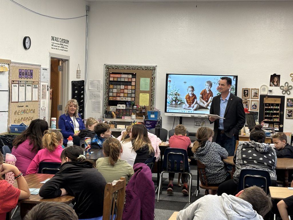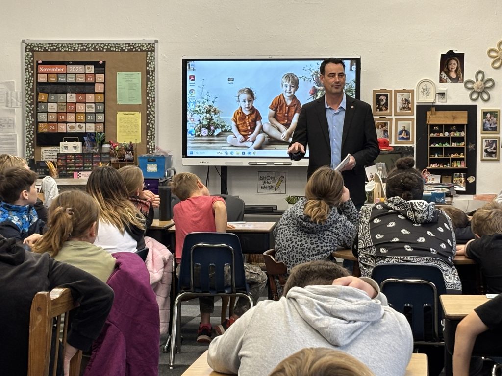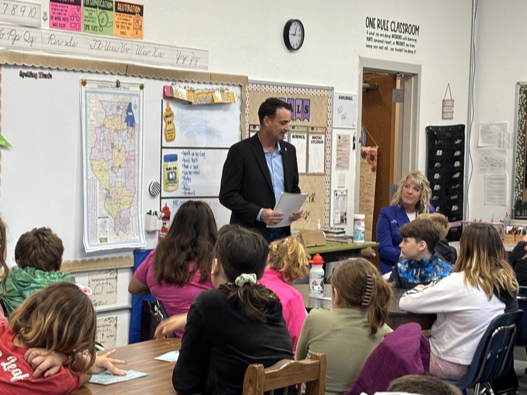 Rep. Blaine Wilhour spoke to the 5th grade classes at Sandoval Elementary School on November 13, 2025.