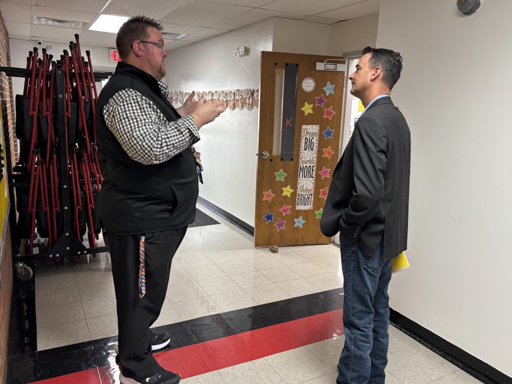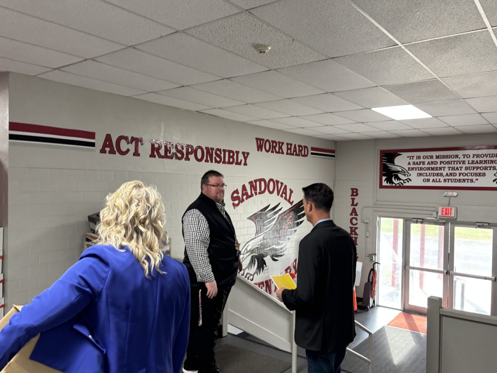 On Thursday, State Rep. Blaine Wilhour accepted an invitation to speak to two 5th Grade classes at Sandoval Elementary School in Marion County. Afterwards, the principal Adam Hanks provided a tour of the school and explained their efforts to make upgrades to the facility.