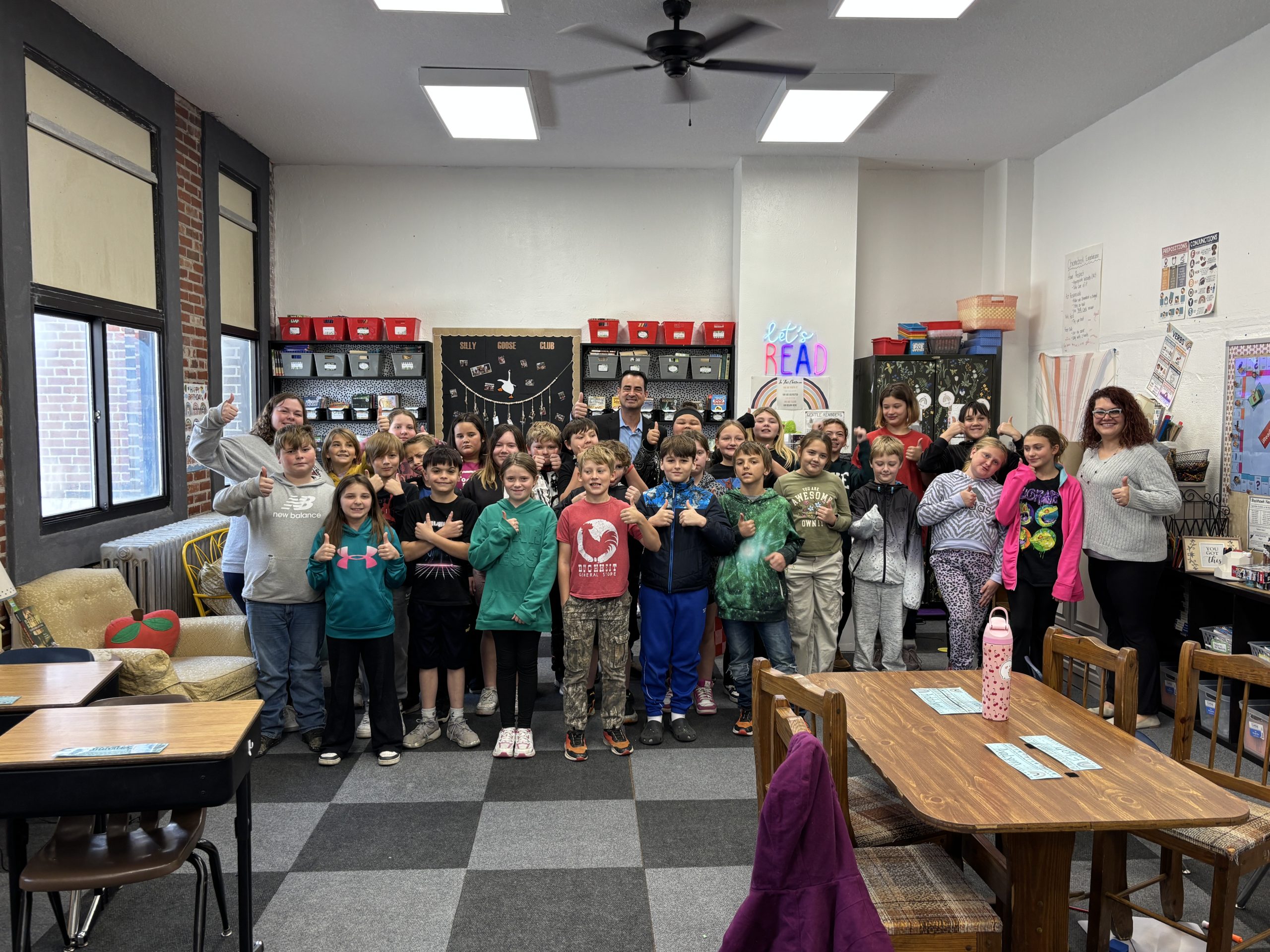 Rep. Blaine Wilhour spoke to the 5th grade classes at Sandoval Elementary School on November 13, 2025.